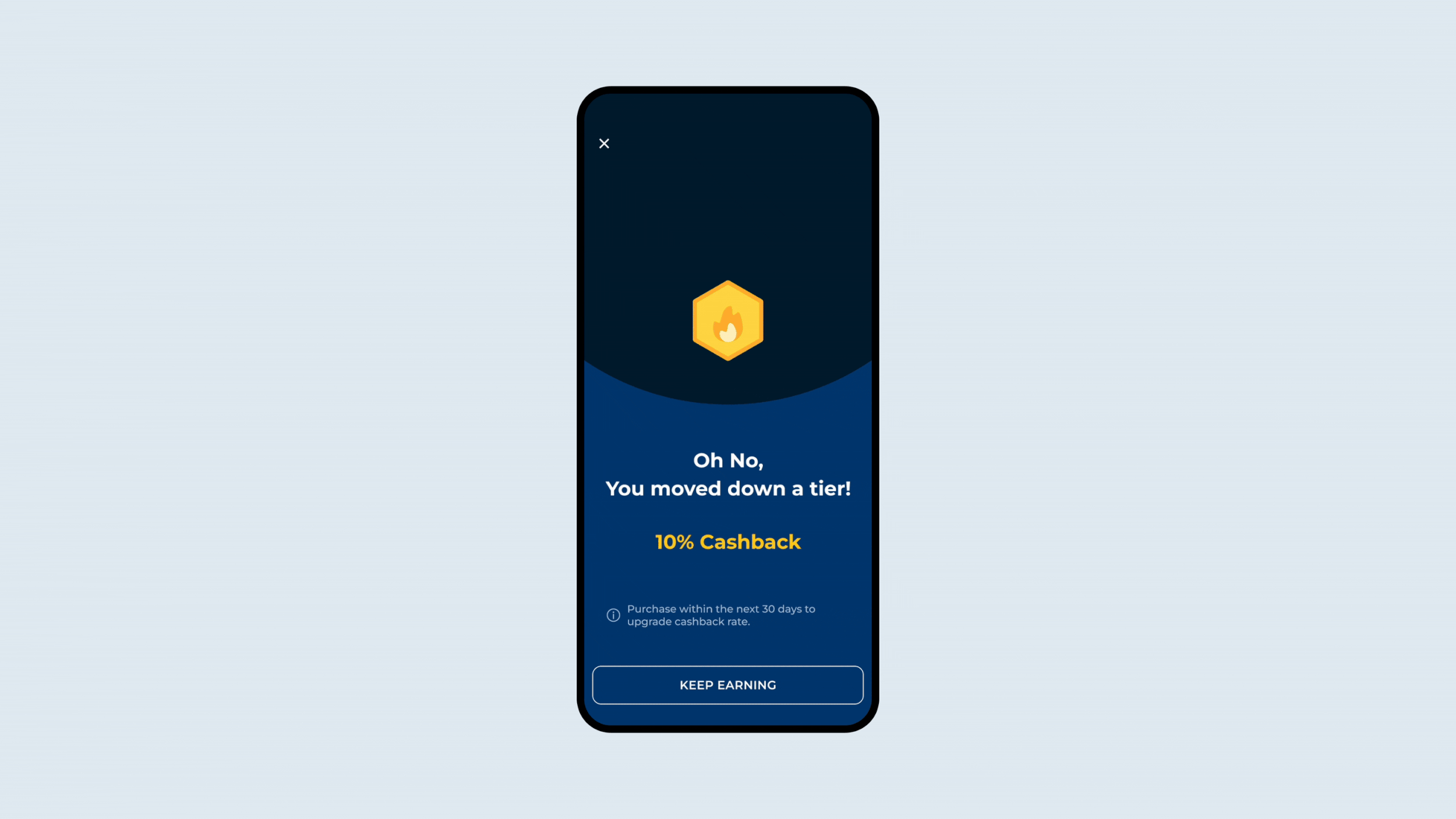 A screen animation when the user does not meet the rules of their current tier.